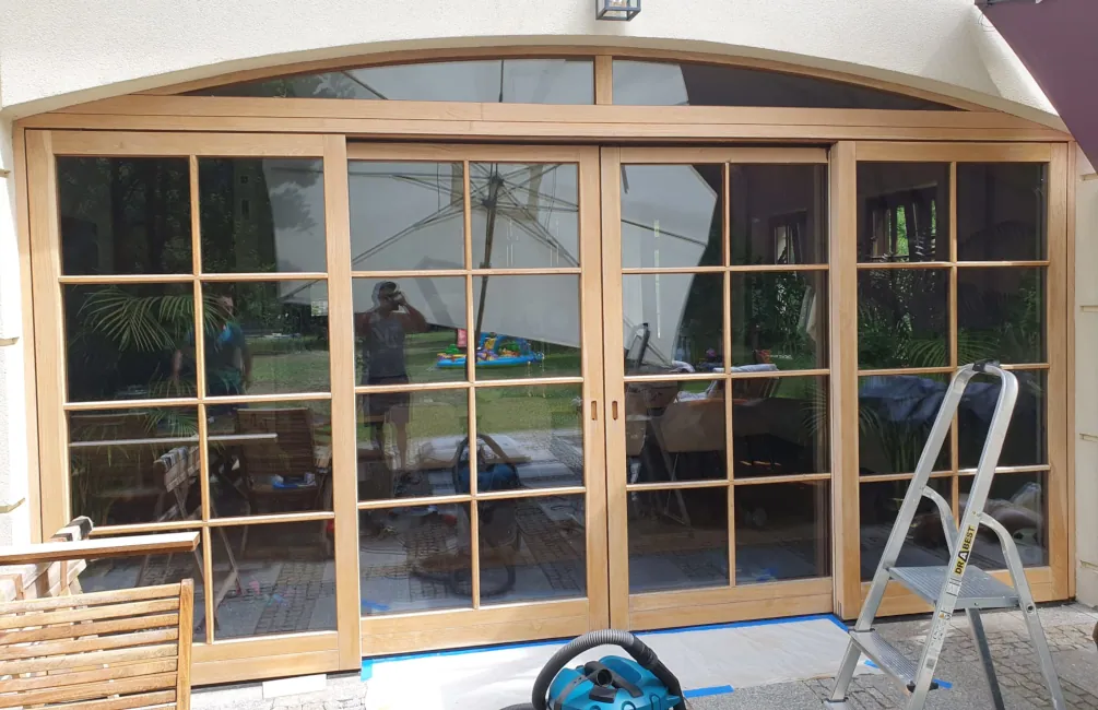 Renowacja okien i drzwi drewnianych: kompleksowa renowacja powłoki lakierniczej, konserwacja drewna, odtwarzanie elementów zabytkowych, wymiana przegnitych fragmentów drewna, wymiana szyb zespolonych, naprawa i konserwacja okuć, montaż brakujących okapników, wymiana uszczelek, regulacja stolarki, przywracanie funkcjonalności i estetyki drewnianych okien i drzwi.